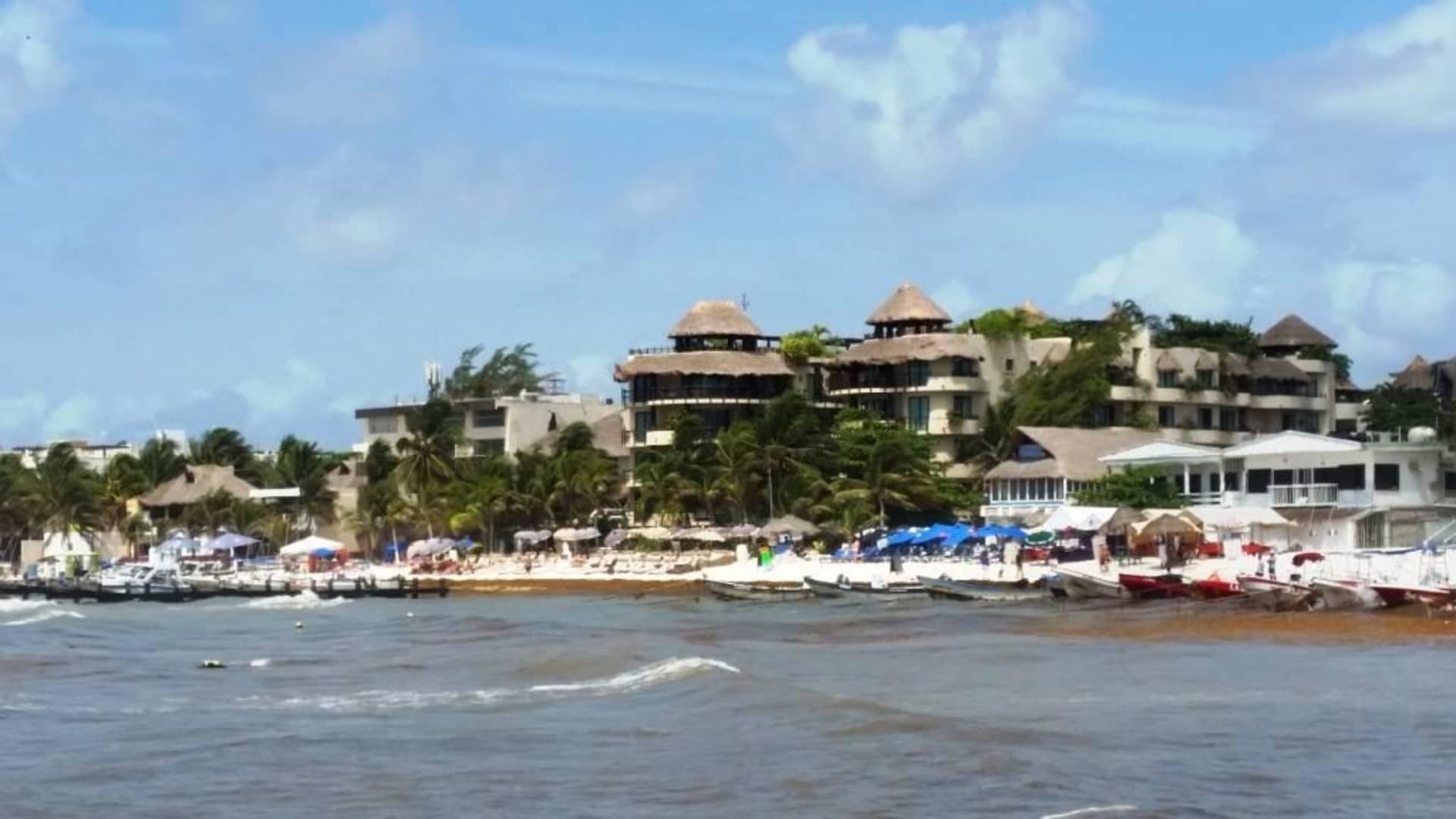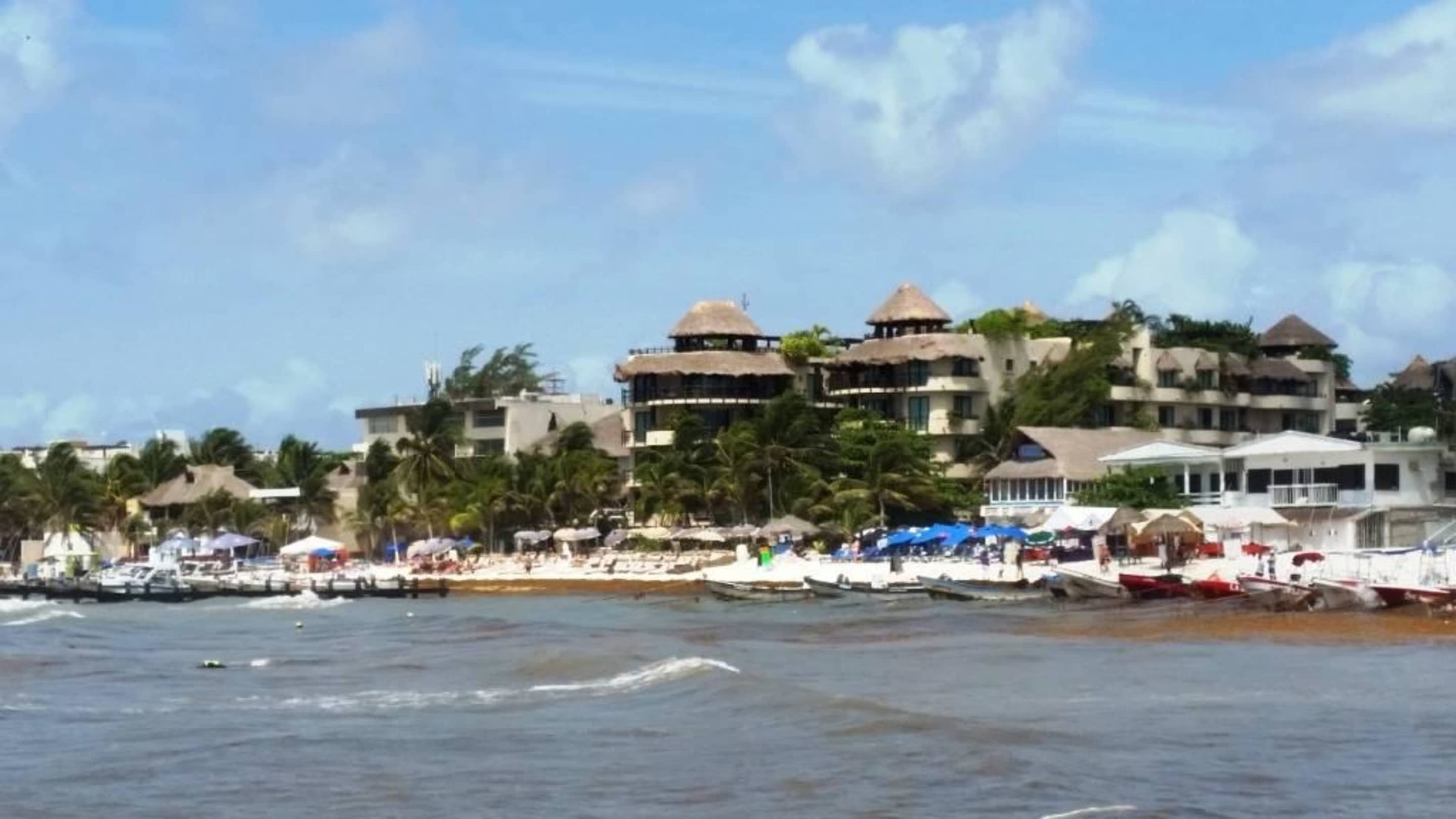 Blick auf Playa Palms und Stadtstrand, mit Seegras