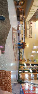 Panorama der Lobby mit Aufzug und Restaurant
