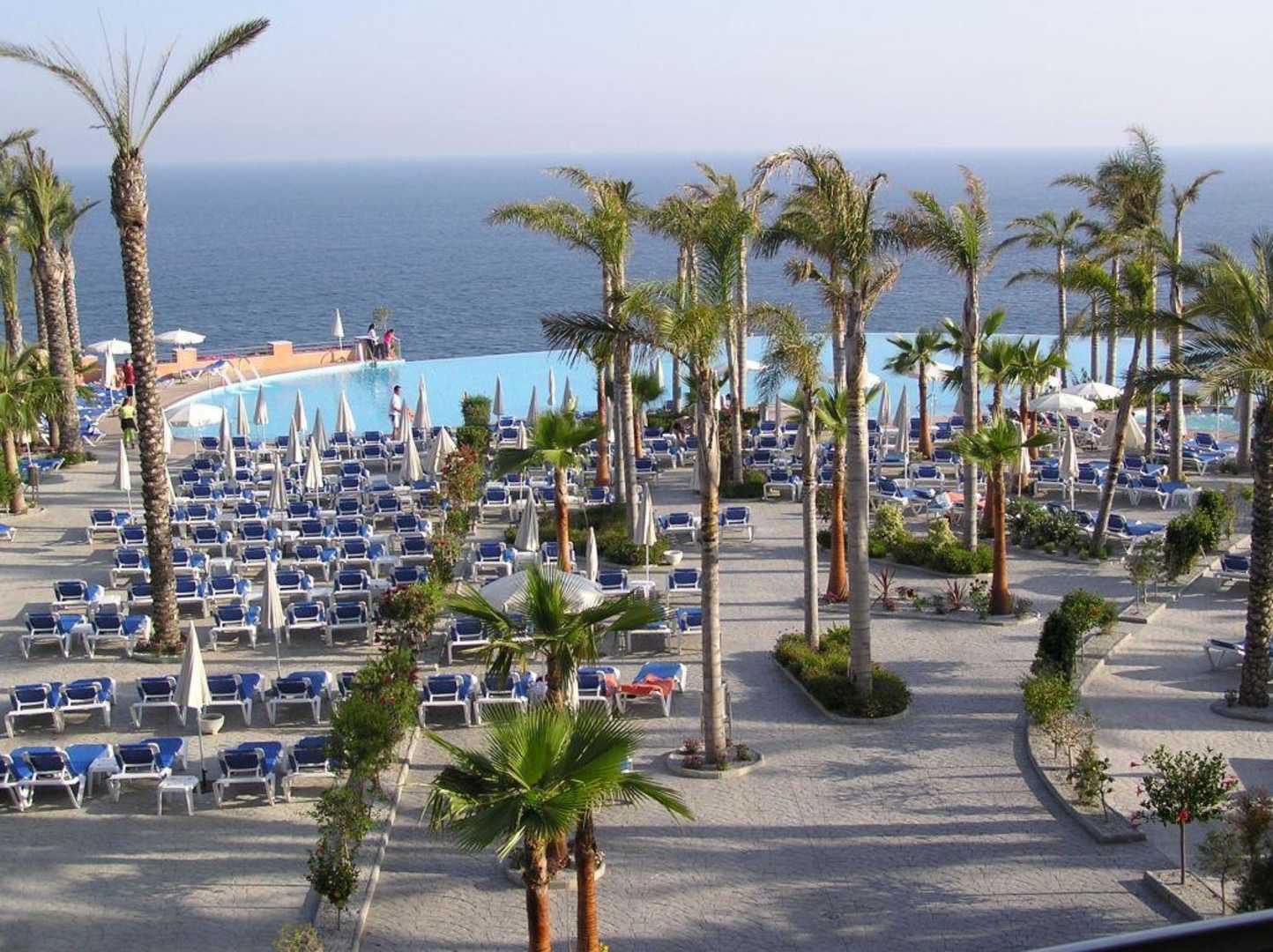 Sicht vom Hotelzimmer auf den Panoramapool und das Meer
