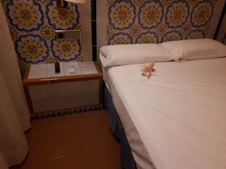 Das Bett war nur 140cm für die erwachsene Person it Kind. Zimmer so klein und roch muffig. Man musste die ganze Nacht Balkontür offen lassen, Klimaanlage einschalten und Ventilator. Zimmer veraltet...es war echt eine Zumutung.