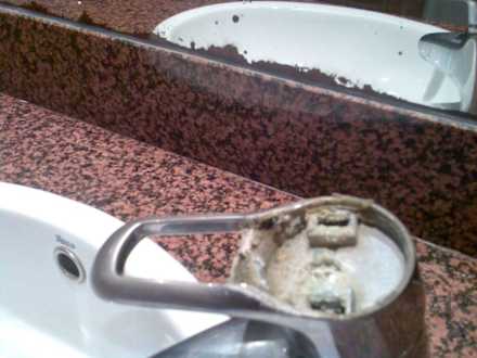 suciedad en grifosdel baño, espejo penoso