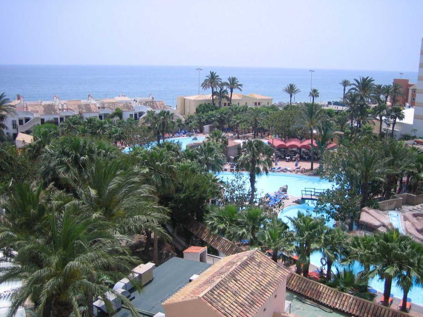 Das ist die gemeinsame Poollandschaft der Hotels Playalinda und Playasol. Das ist die links Seite der Poollandschaft mit Ausblick aufs Meer.