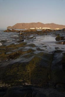 Blick von den Felsen am Strand bei Las Playitas in Richtung Bahia Grande, das im Hintergrund zu sehen ist. Sehr schön zum spazierengehen und relaxen!