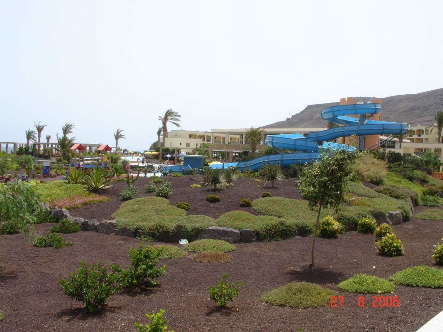 Riesenrutsche mit Gartenanlage, im Hintergrund Aparthotel Bahia Grande