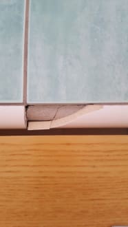 Gebrochene Fliesen im Zimmer. Vorsicht Schnittgefahr.
