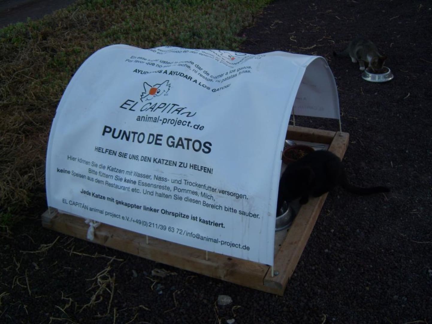 In der Gartenanlage befindet sich eine Station für Katzen, wo man etwas gutes für Heimlose Katzen tun kann. Z.B. Futter spenden oder füttern. Mögen gerne Feuchtfutter.