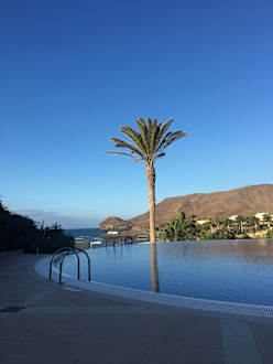 Morgens; Pool mit Ausblick zum Strand