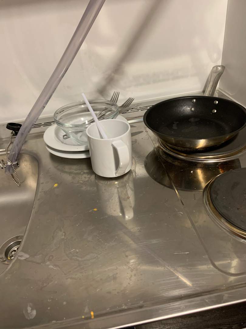 Verschimmeltes Geschirr im Schrank.