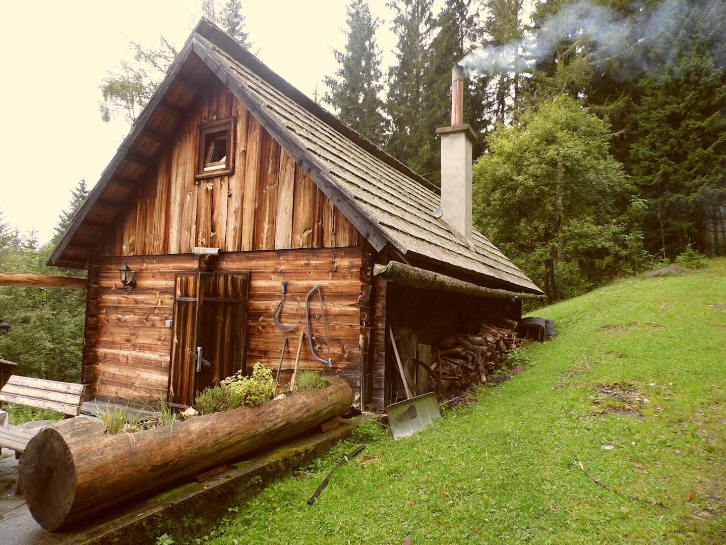Almhütte mit Holzvorrat