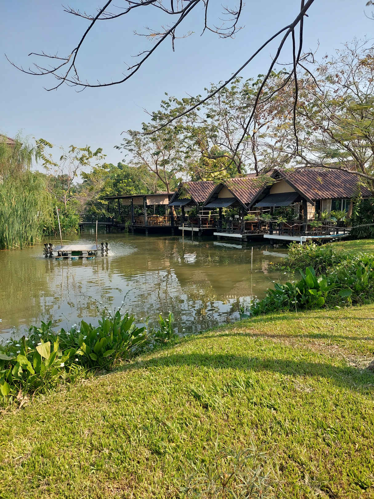 Teich mit Blick auf das Restaurant