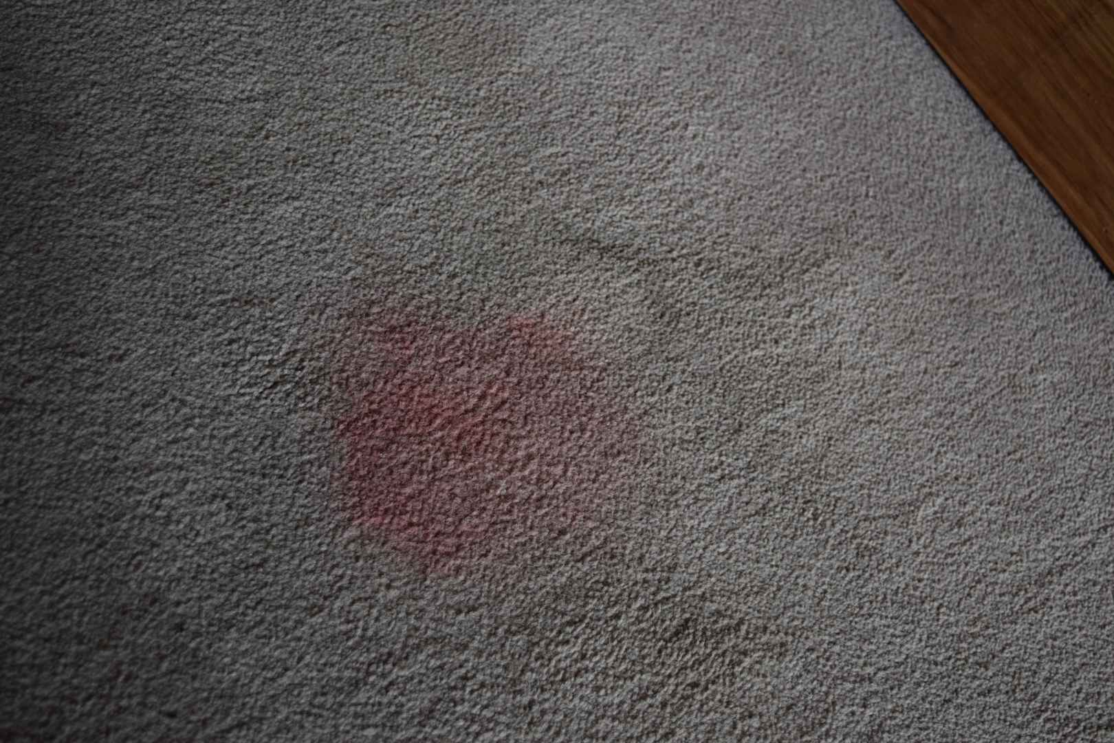 ZimmerSehr großer, roter Fleck auf dem Teppichboden im Zimmer. Hier hatte wohl mal ein Gast Rotwein verschüttet.
