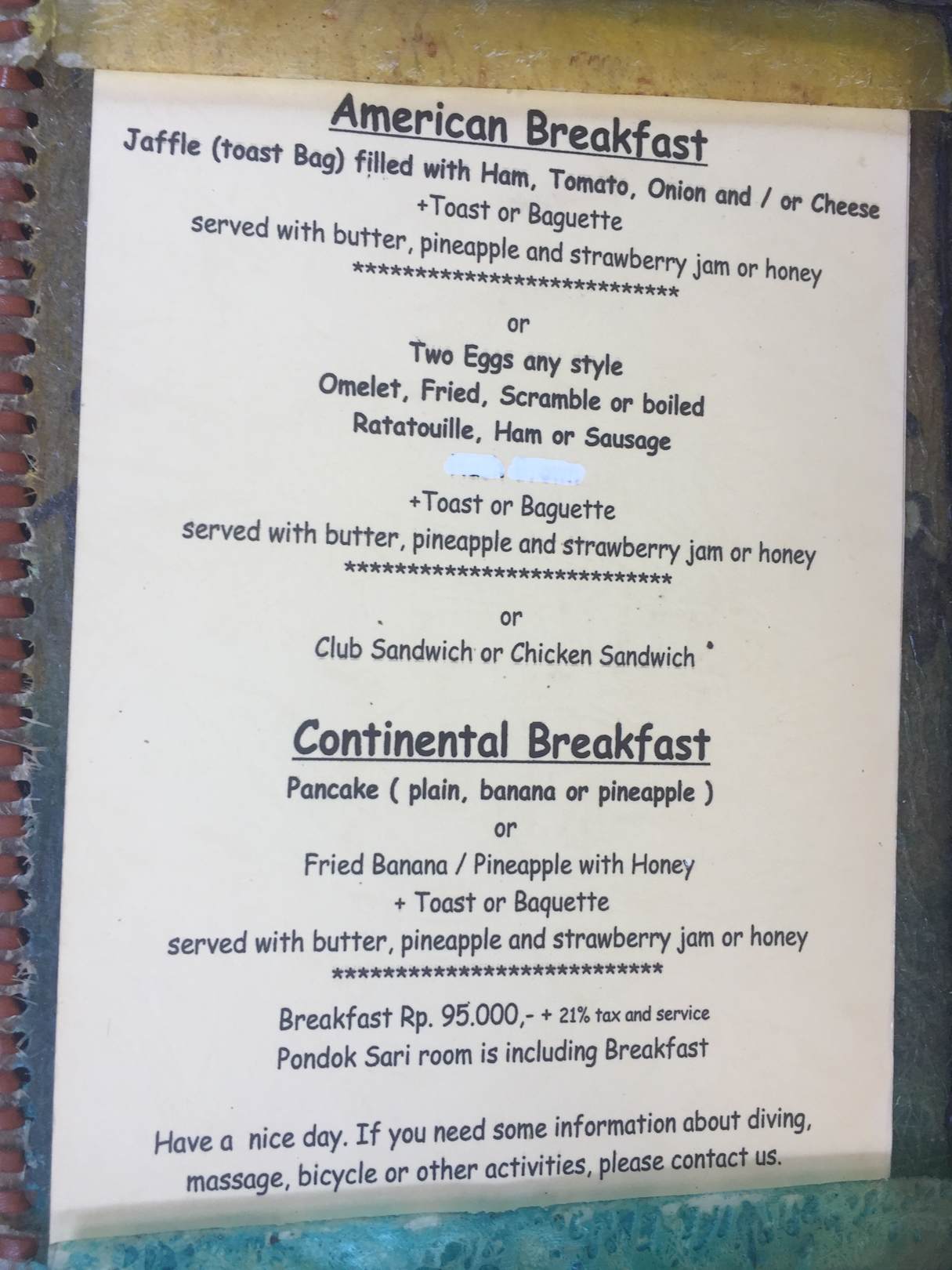 Frühstückskarte nicht variierend.