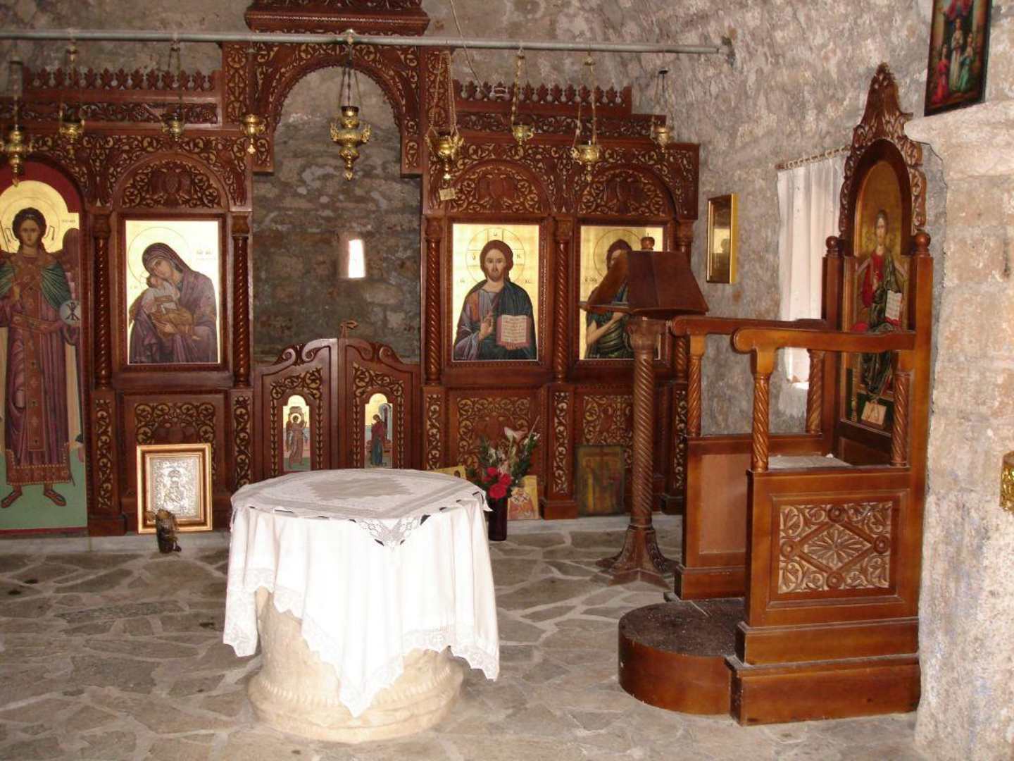 Altar und Taufbecken.