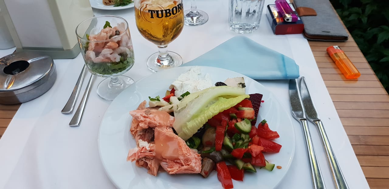 Gastrokleiner Snack mit Räucherlachs und Krabbencocktail