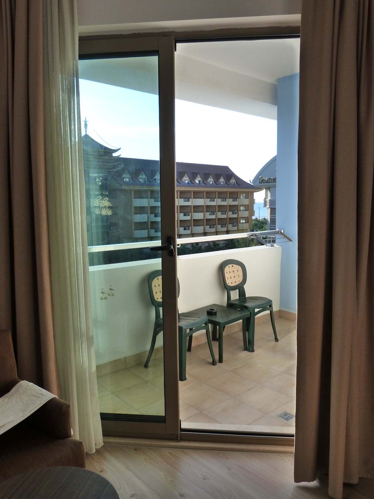 Blick vom Zimmer über den Balkon