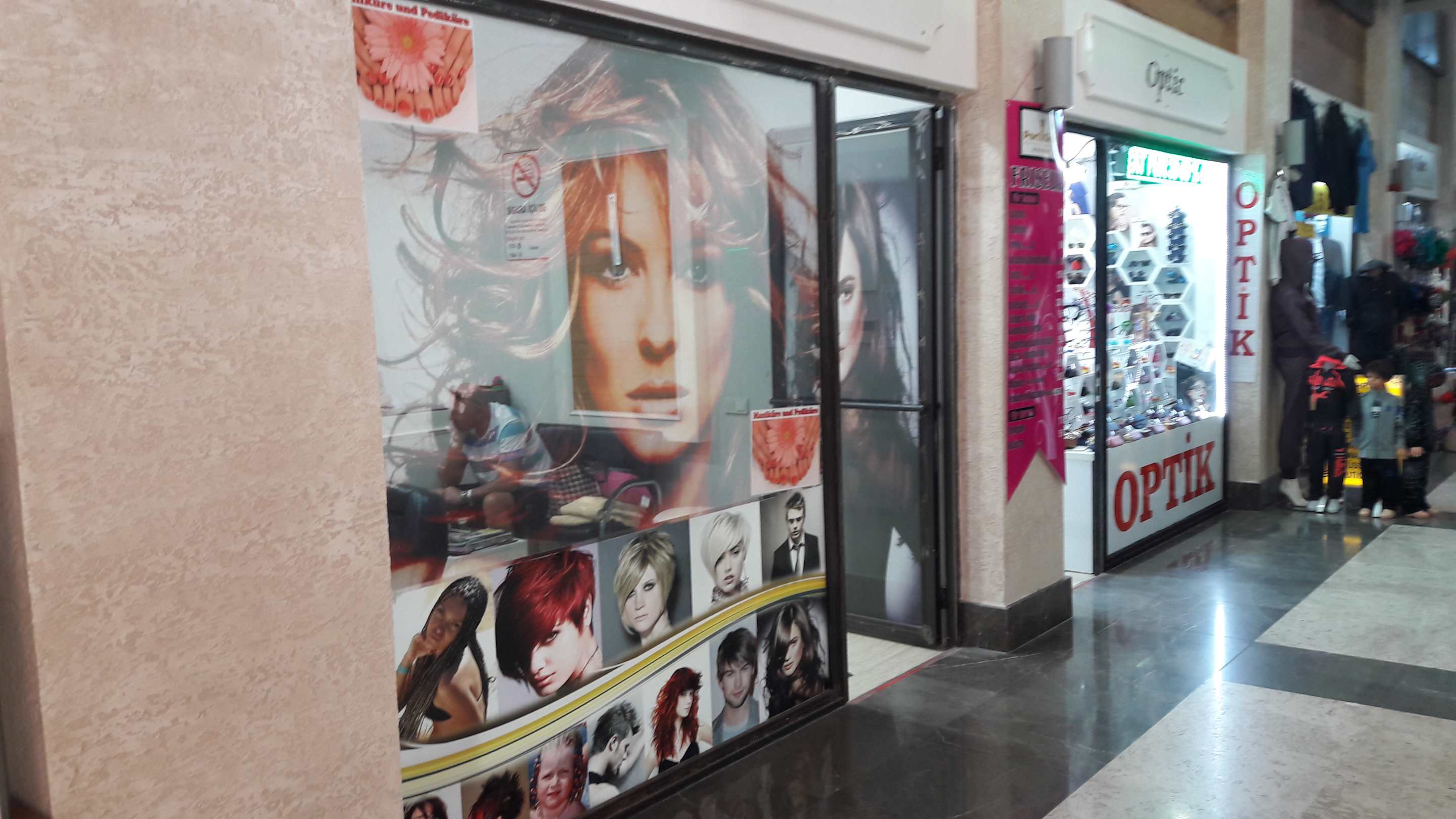 Friseur und Optikerladen im unteren Bereich