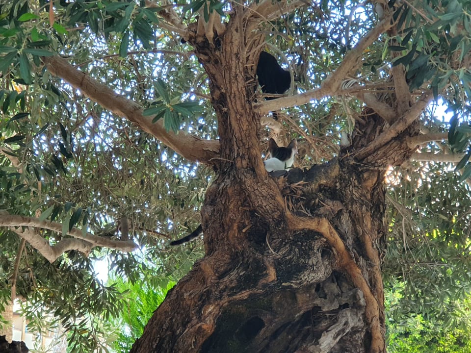 Der alte Olivenbaum mit Katzen