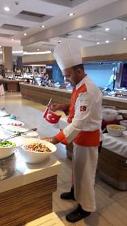 Ein letzter Handgriff mit dem türkischen Fähnchen