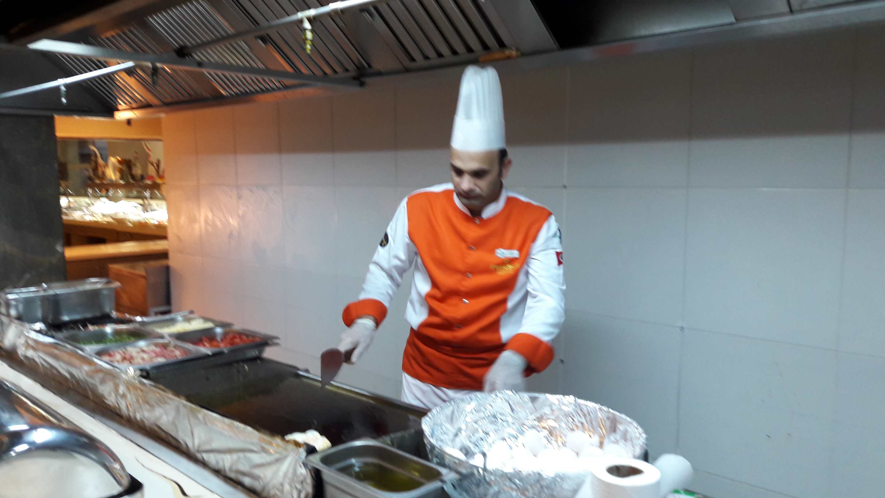 Der Sous-Küchenchef arbeitet fleißig mit