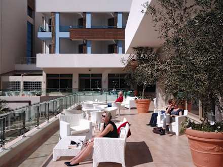 Schöne Lobbyterrasse, zum Bücher lesen ideal