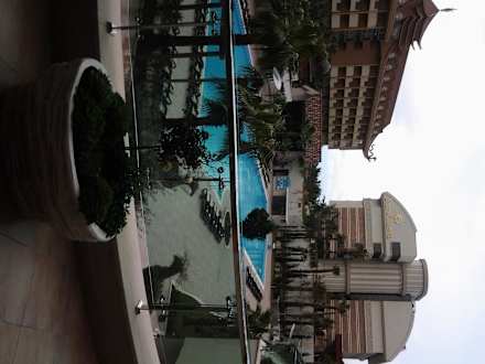 Blick vom Lobbybalkon zum Pool