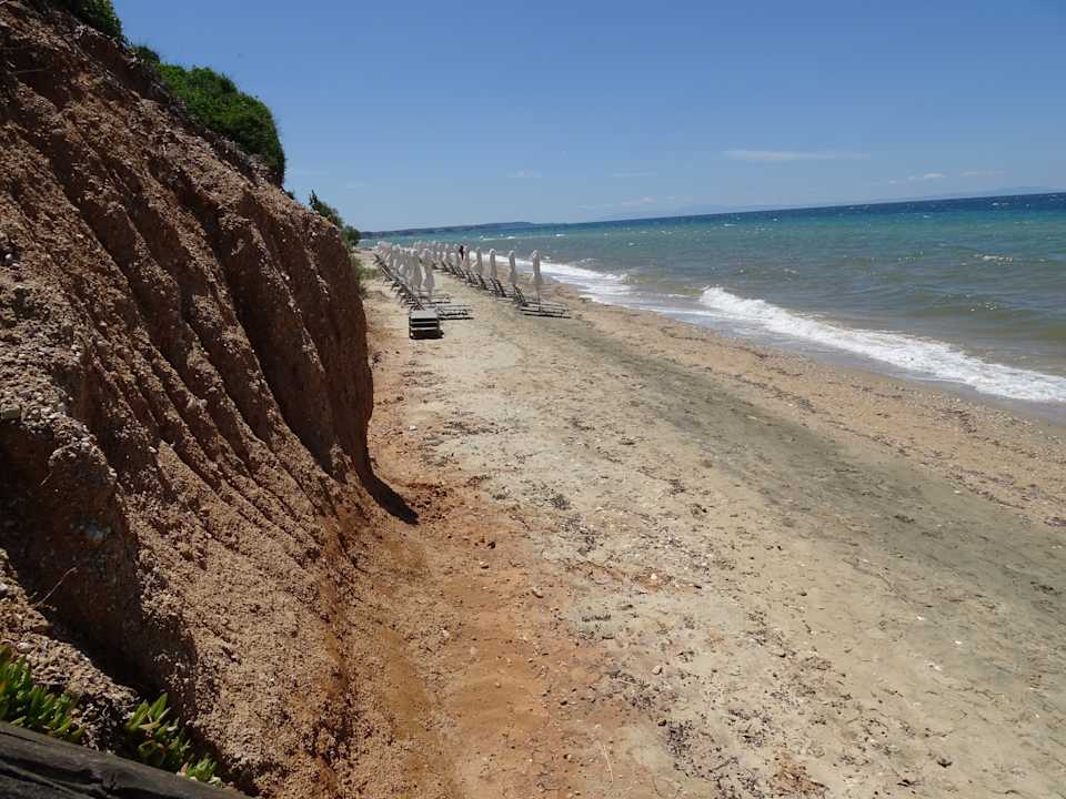 Hoteleigener Strand mit Liegen und Sonnenschirmen