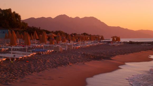 Hoteleigener Strand bei Sonnenaufgang