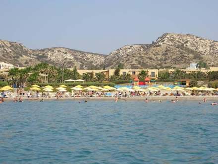 Strand mit Hotel im Hintergrund
