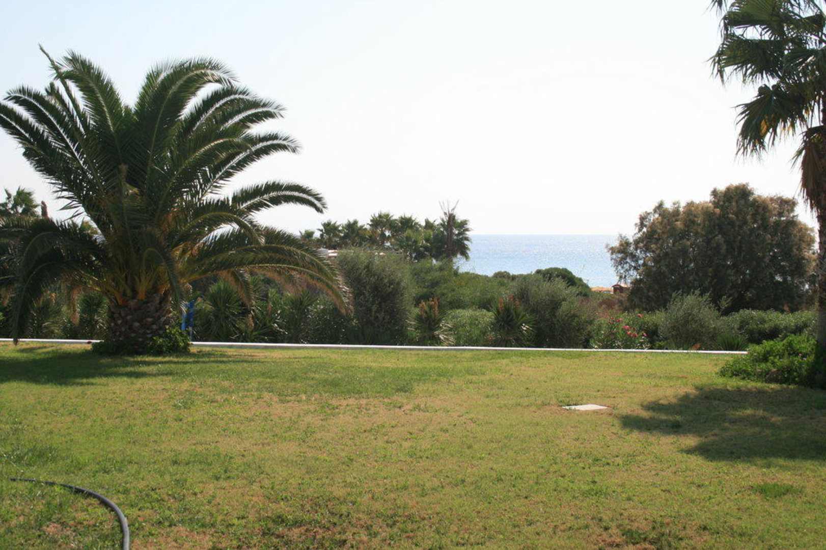 Blick vom Garten auf das Meer