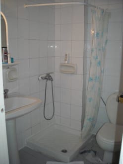 eine interessante Lage der Dusche (Achtung Überschwemmung!) Dazu noch eine undichte Toilette!