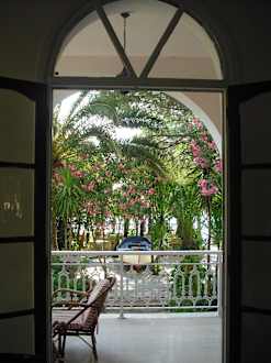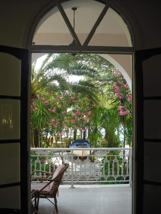 Blick vom Frühstücksraum in den Garten
