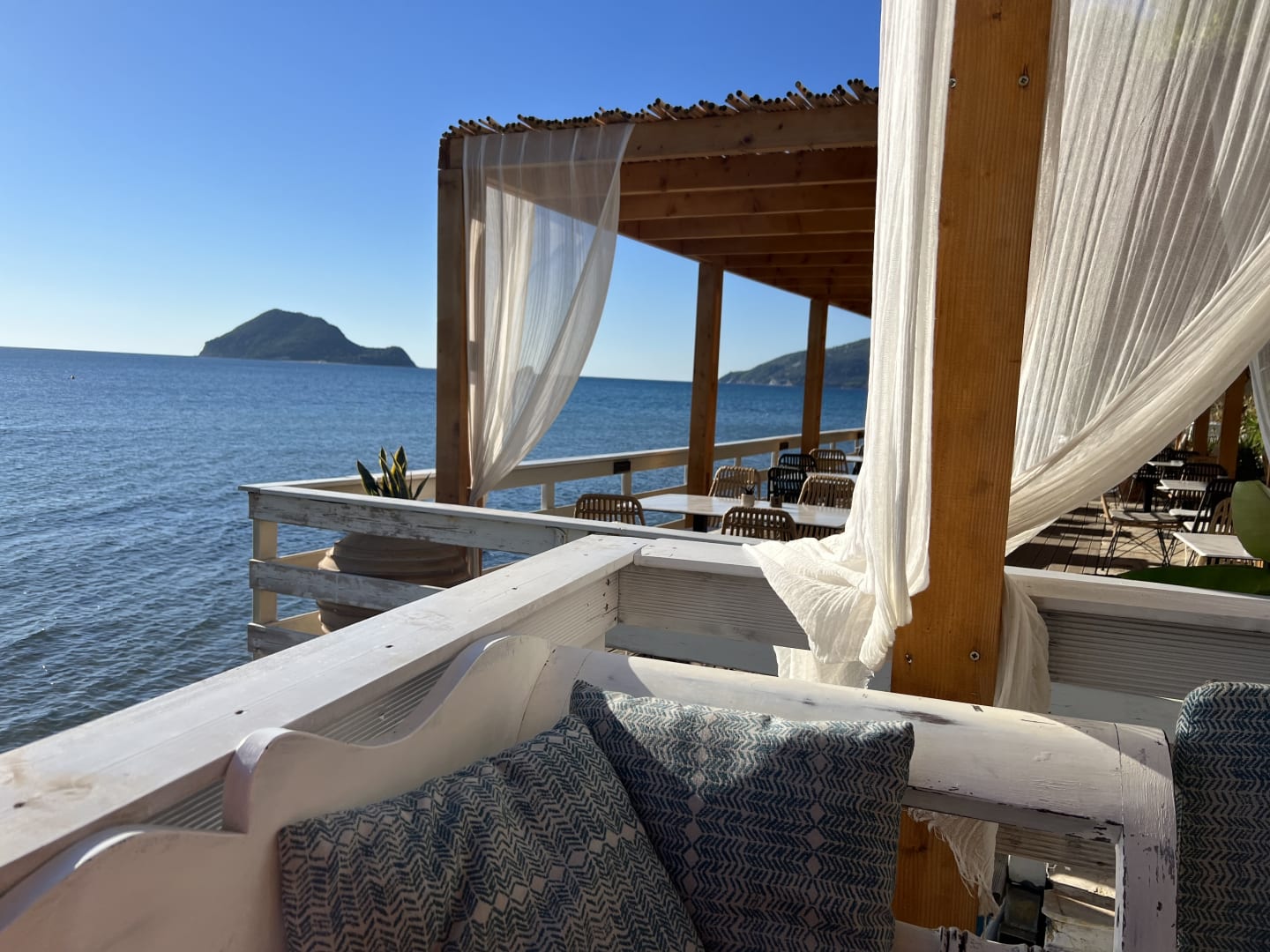 Untere Bar mit Sicht und Zugang zum Meer