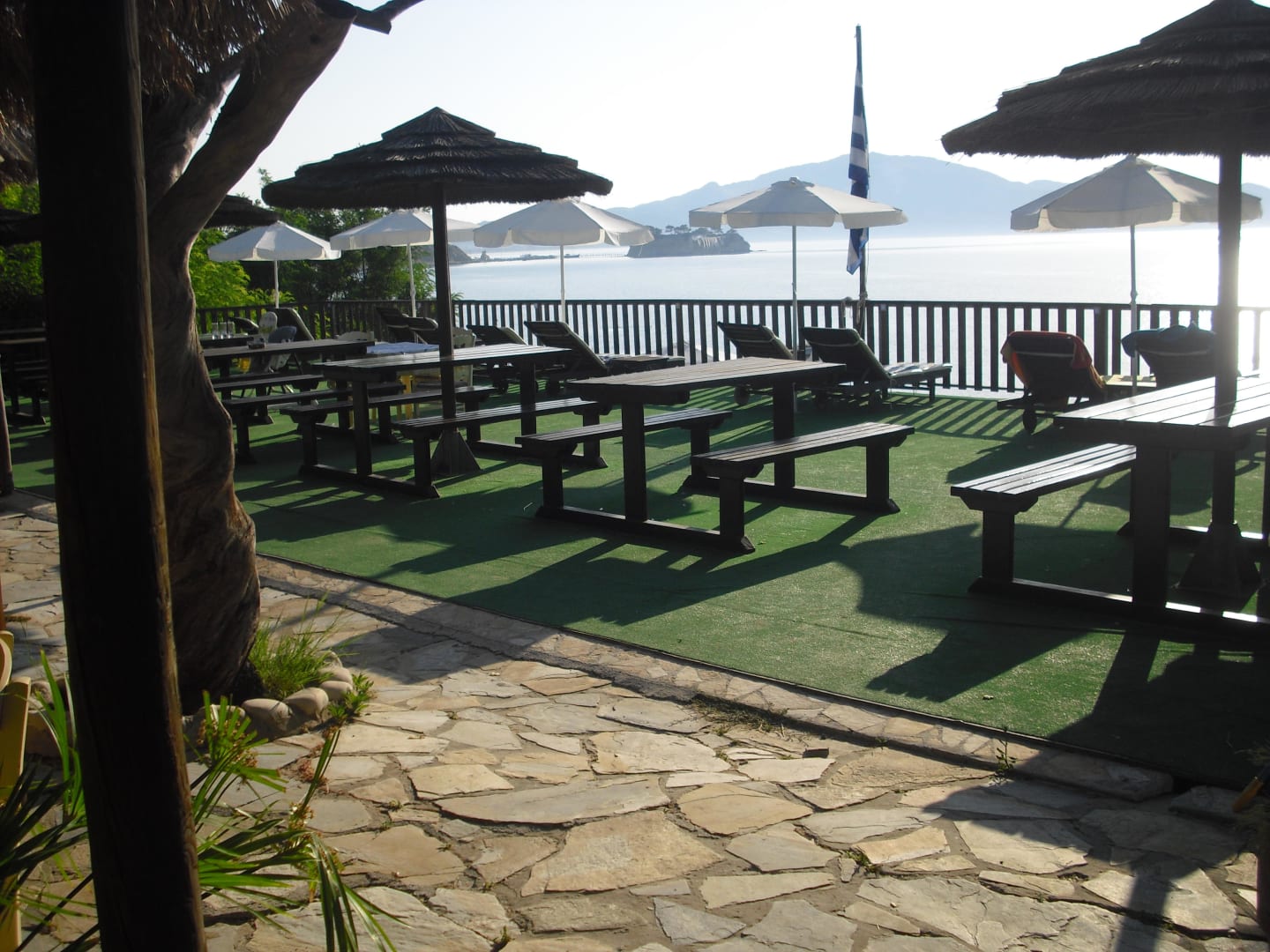 Sonnendeck und abends RestaurantVom Sonnendeck hat man einen wunderbaren Blick aufs Meer.