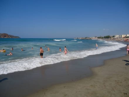 Grober Sandstrand, kaum Steine, flach abfallend
