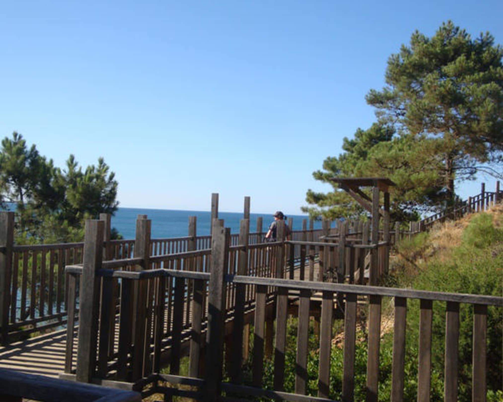 über schöne Holztreppen führt der Weg zur kleinen, idyllischen Hotelbucht (leider nur klein, ohne Sonnenschirme oder Liegestühle)