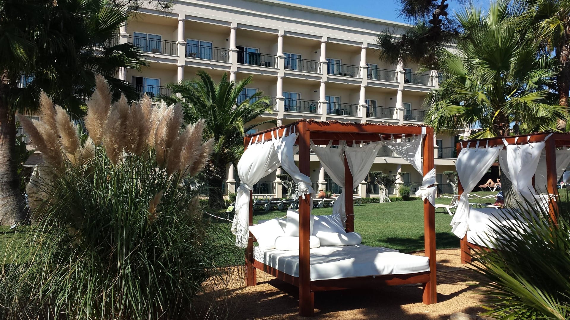 Balibett mit Teil des Hotels PortoBay Blue Ocean