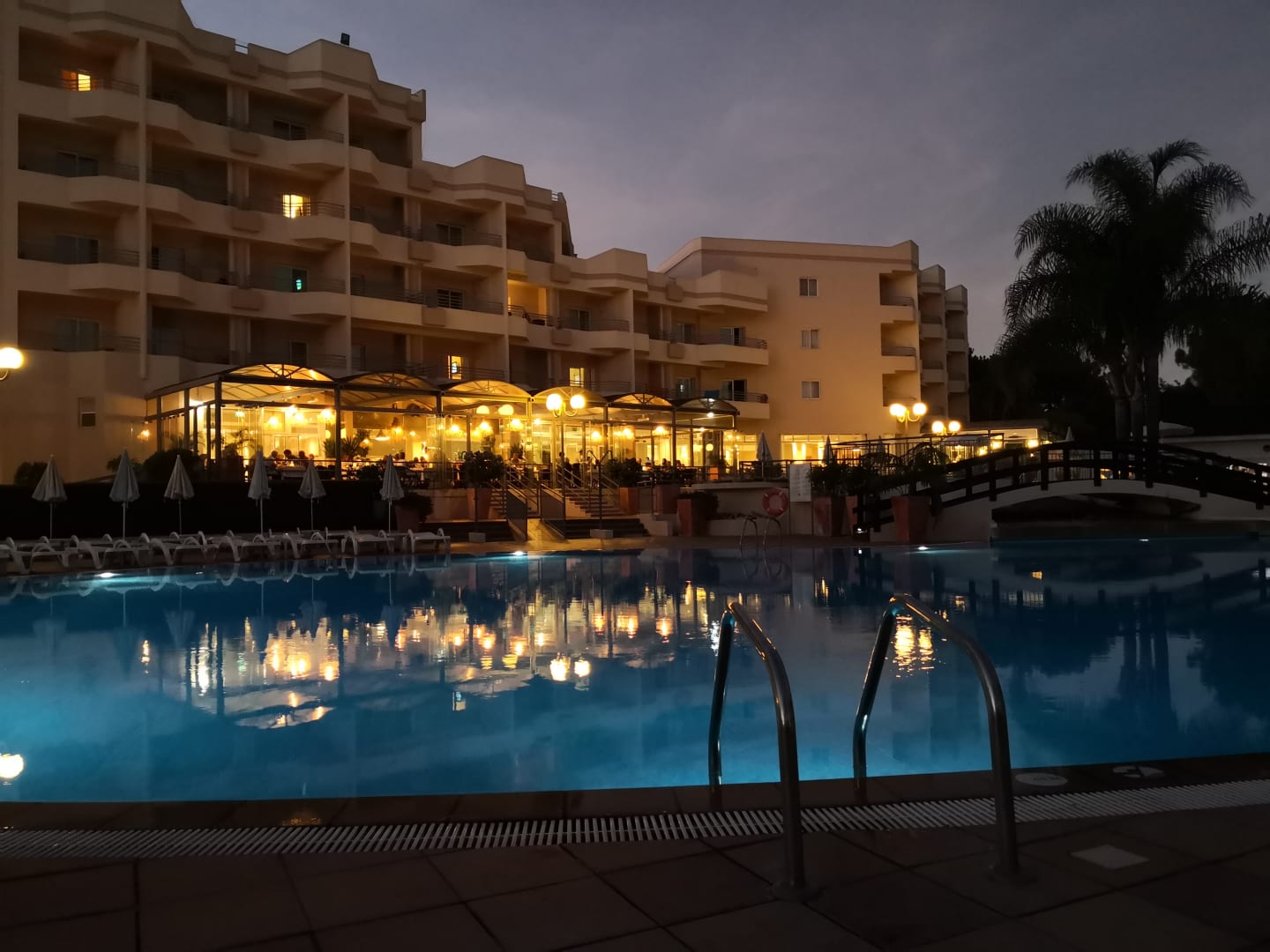 Außenansicht vom Pool und der überdachten Terrasse.