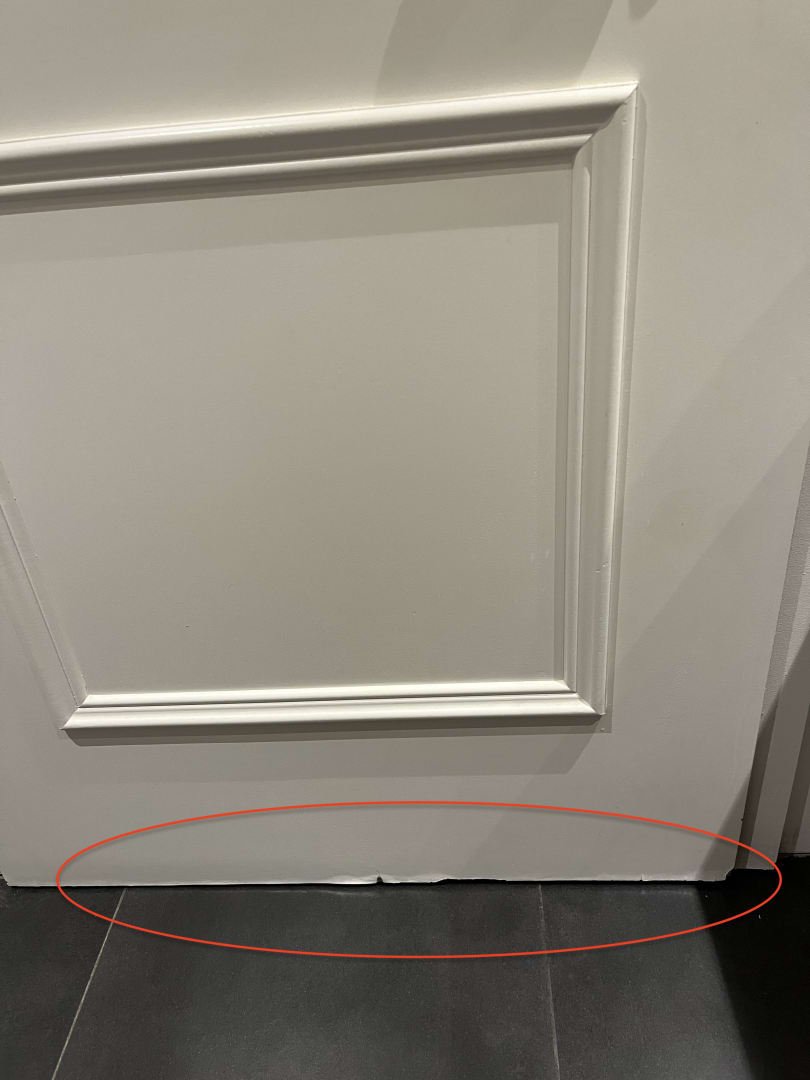 Badtür, völlig verquollen, ließ sich nur mit sanfter Gewalt schließen