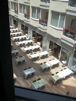 Hier sieht ihr den Essensbereich, draußen in der Mitte des Hotels. Es gibt auch einen Essensbereich Innen. Macht aber keinen Sinn, wenn das Wetter gut ist.
