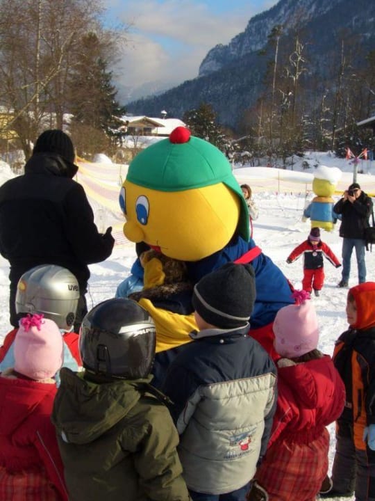 Smiley besucht die Skischulkinder