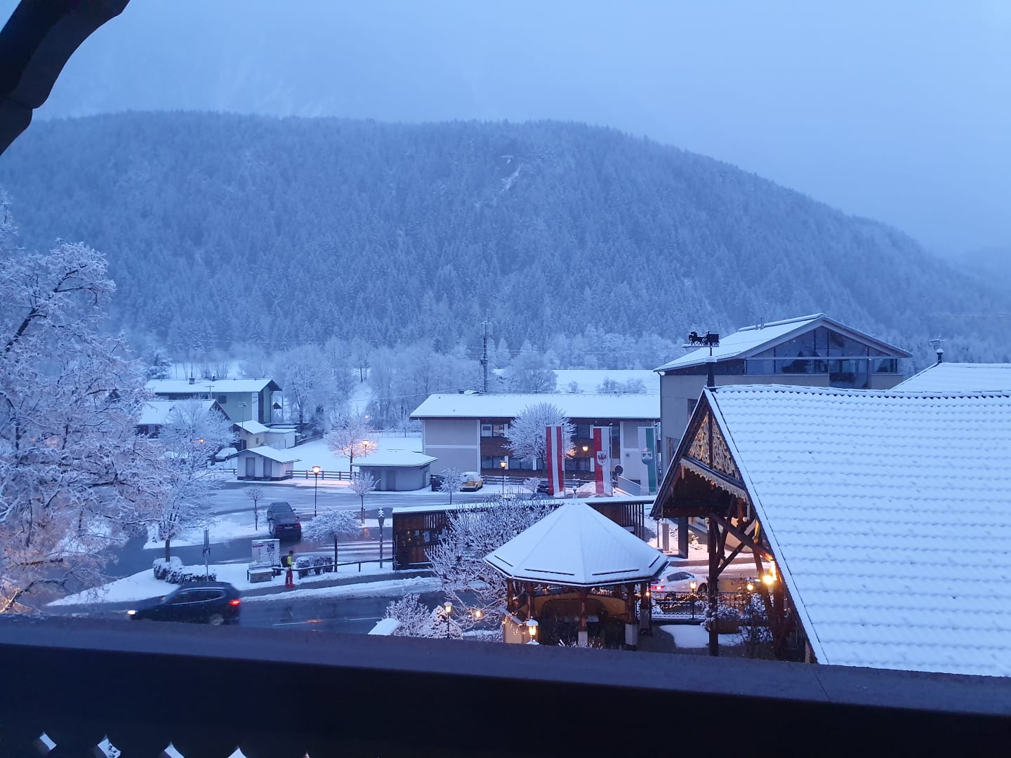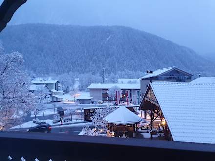 Ausblick vom Balkon auf eine schöne Winterlandschaft