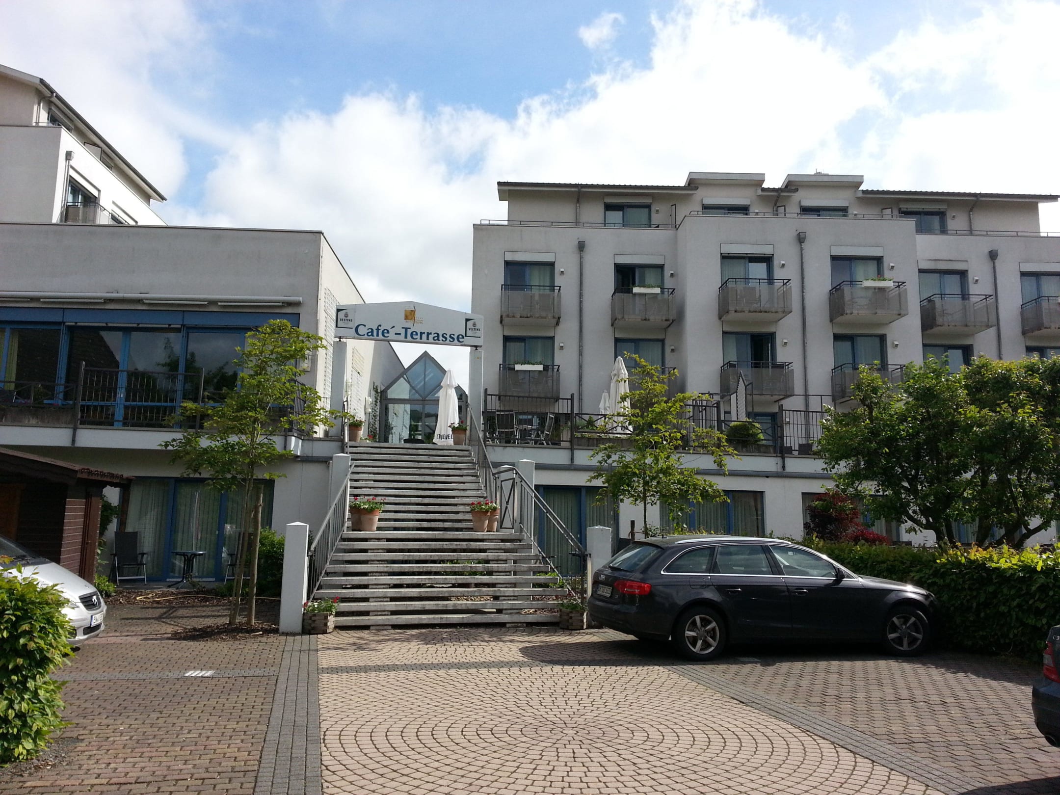 Parkplatz und Aufgang zur Caffeteria