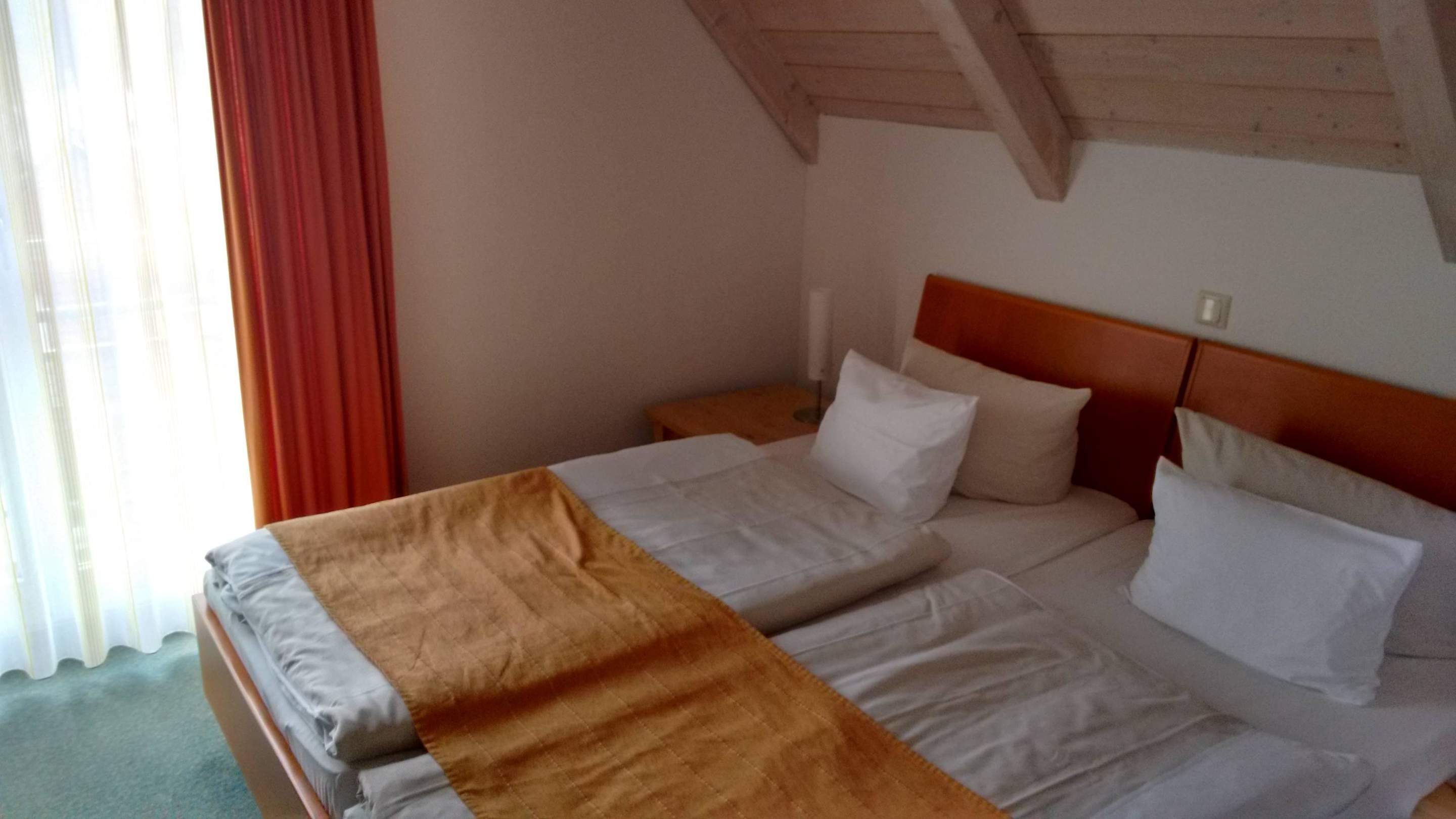Doppelbett in Richtung Fenster gesehen