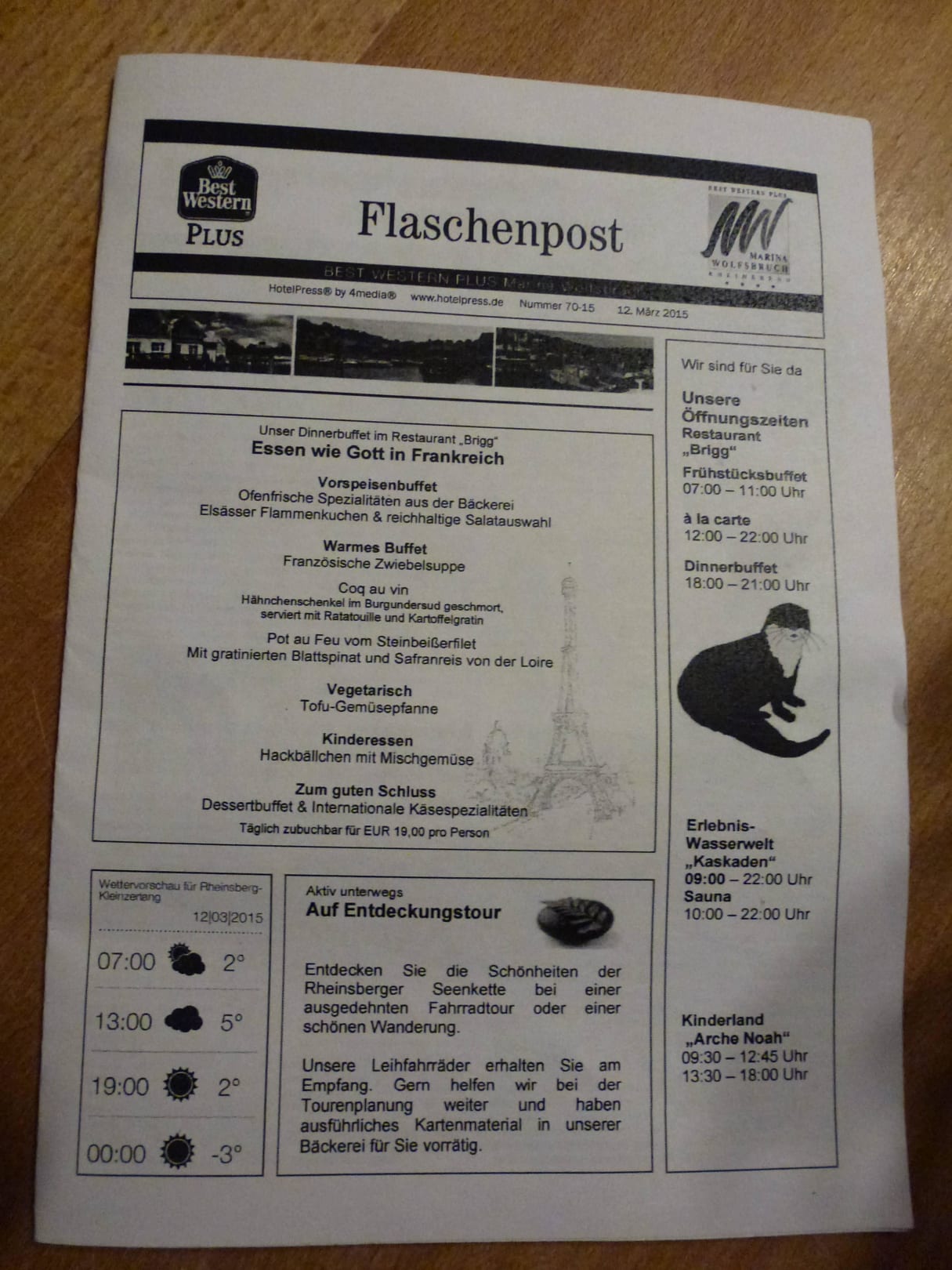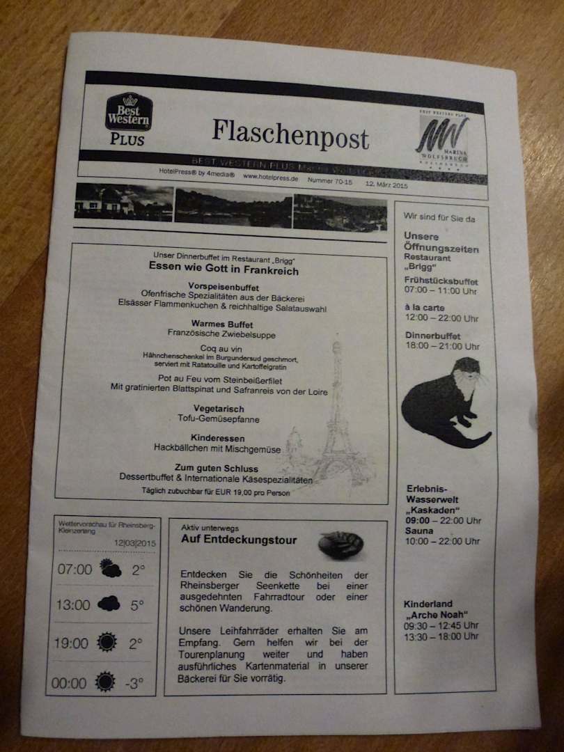 Flaschenpost, die Hotelzeitung