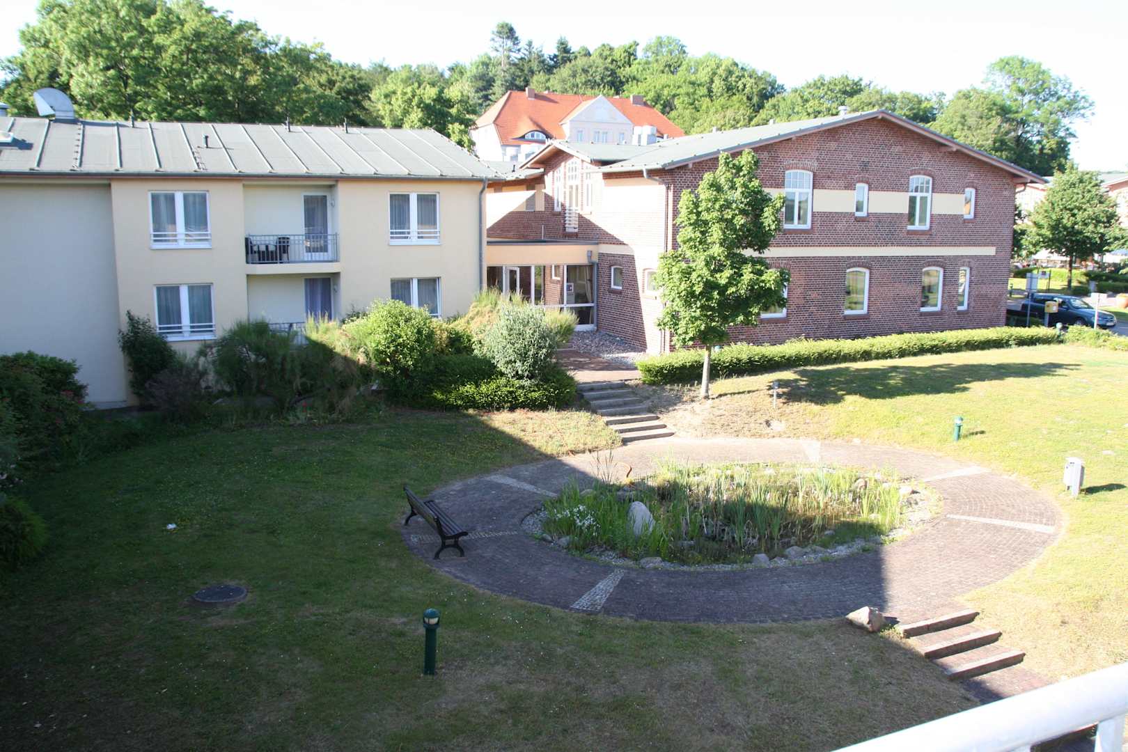 Blick in Innenhof, rechts Rezeption