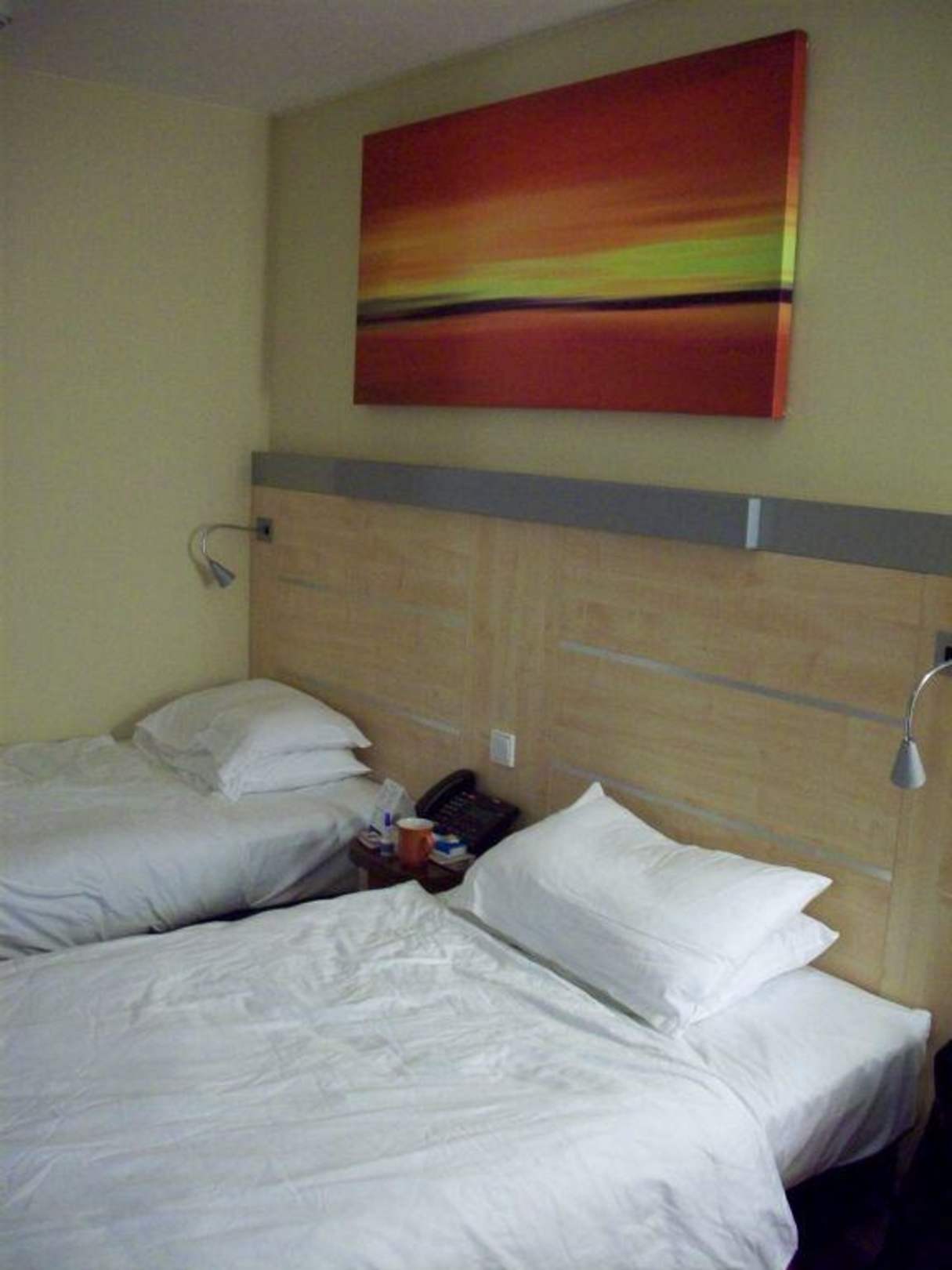 2 bequeme Einzelbetten und schönes Bild.