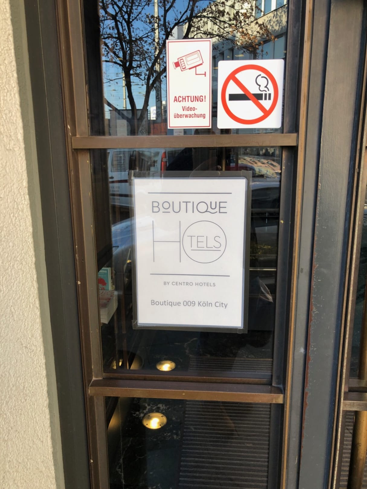 LobbyEingangstür - nur hier ist der jetzt gültige (und so einzig auf der Reservierungsbestätigung genannte) Hotelname erkennbar.