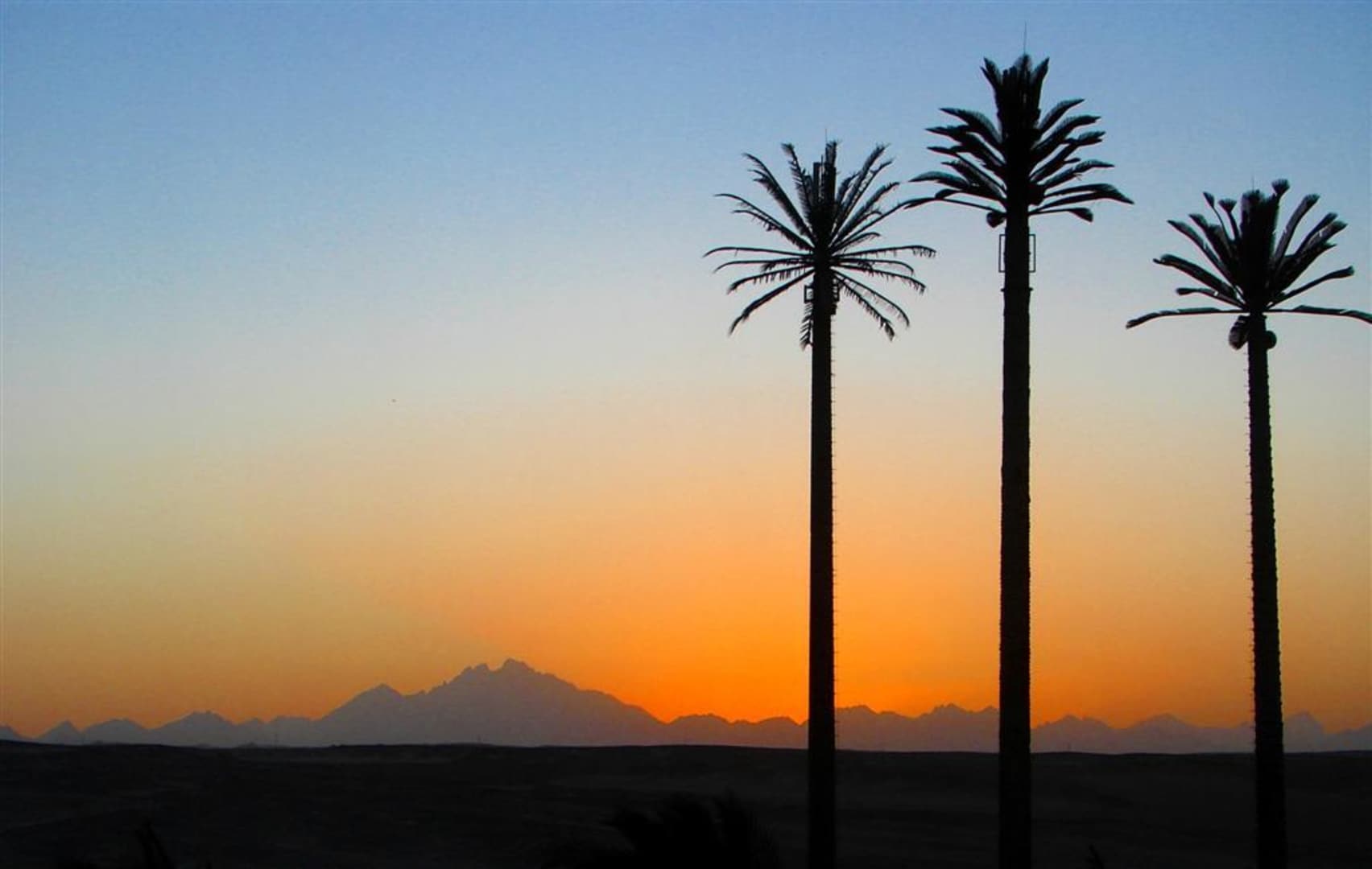 Beim Hoteleingang Blick auf drei Palmen ( = getarnte Handymasten)