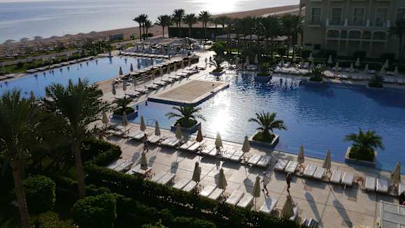 Blick vom Balkon zum Pool