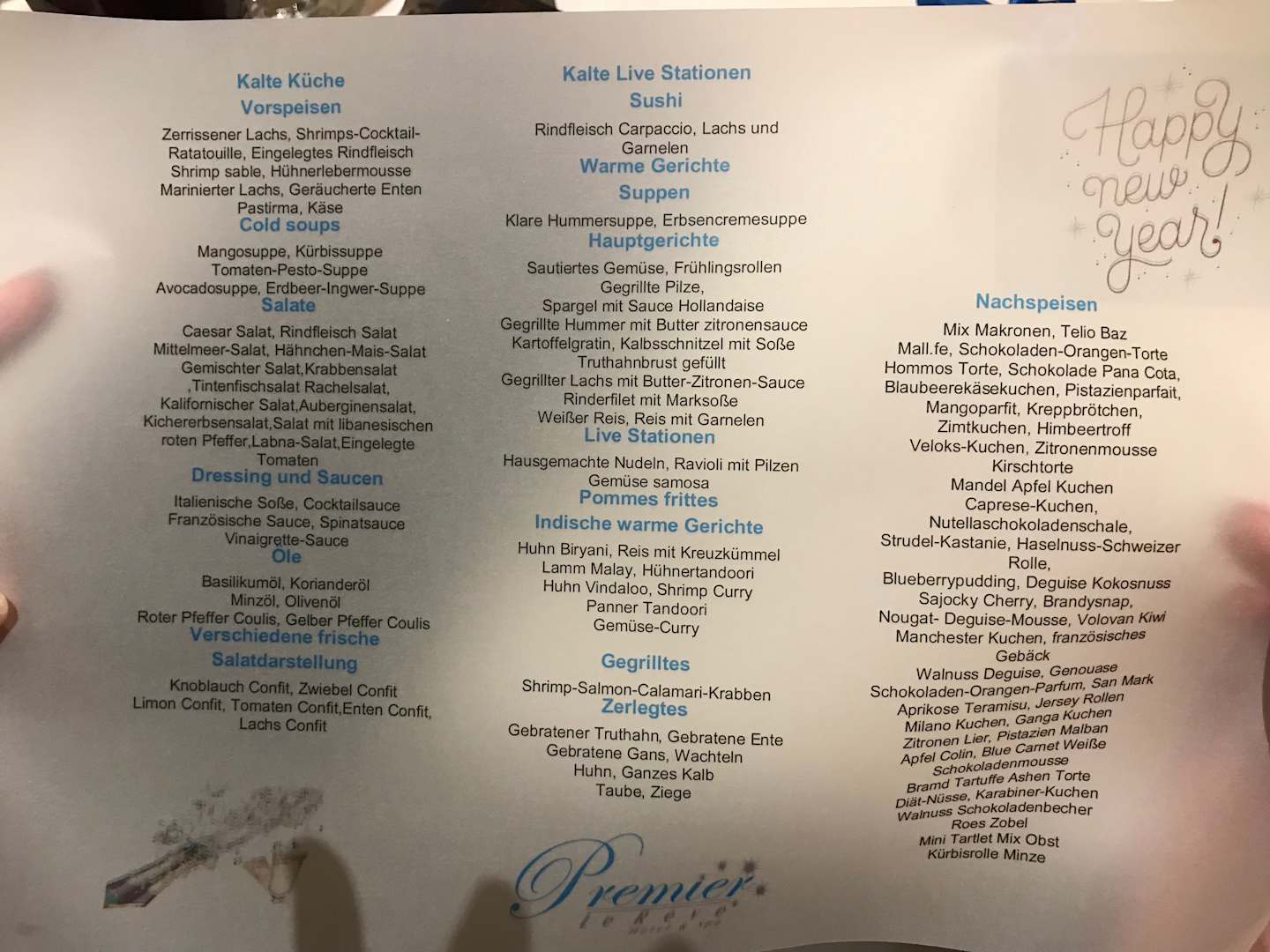Silvesterbüffet-Menükarte